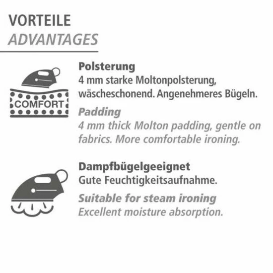 2. Lage (separat): Komfort-Polsterung aus Molton sorgt für leichtes und knitterfreies Bügeln und schont die Kleidungsstücke.
