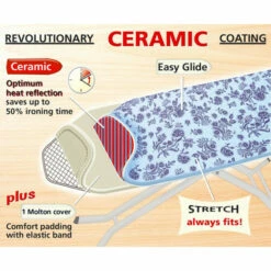 Hightech-Bügeltischbezug Für Alle Bügeltischgrößen Von S Bis XxlMit Keramik-Beschichtung Für Optimale Hitzereflexion, Spart Bis Zu 50% BügelzeitSpezielle Oberflächenbehandlung Bietet Mit Hervorragender Gleiteigenschaft Zusätzlichen Komfort100% Elastischer Baumwollbezug Mit Wäscheschonendem Molton-Unterbezug Für Optimale Feuchtigkeitsaufnahme (Dampfbügelgeeignet)Patentiert Und -Geprüft