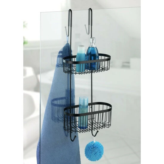 Optisch ansprechende Ablagemöglichkeiten in Badezimmer und Dusche zu schaffen kann so einfach sein! Ein Duschregal zählt definitiv zu den Basics der Badezimmerausstattung. Für das perfekte Wohlfühlbad holen Sie sich mit dem Duschregal Serino einen stilvollen Ordnungshelfer in die Dusche. Das zauberhafte Wohnaccessoire schmiegt sich dank seiner beiden Haken grazil an Ihre Duschabtrennung. Im Inneren der Kabine stehen Ihnen so zwei formschöne Körbe in unterschiedlicher Höhe zur Verfügung. Duschgel, Haarshampoo und andere Pflegeutensilien finden hier ein schmuckes Plätzchen. Abgerundet wird das Design durch zwei Haken am unteren Körbchen, hier finden Sie für Waschlappen und Duschschwamm zwei Aufhängemöglichkeiten in greifbarer Nähe. Außerhalb der Duschwand bietet Ihnen das Schmuckstück ebenfalls zwei Haken, hier haben Sie die Möglichkeit, Duschtücher und Badehandtücher aufzuhängen.