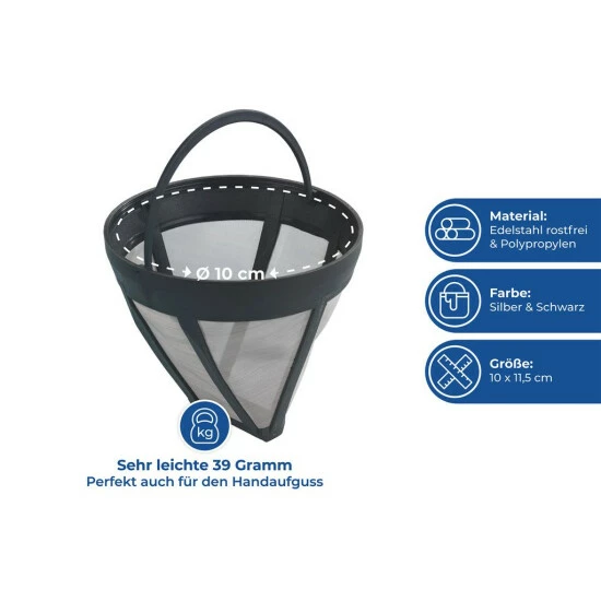Ersetzt Filtertüten Größe 4Edelstahl/ KunststoffSpülmaschinenfestØ 115 x 11 cm