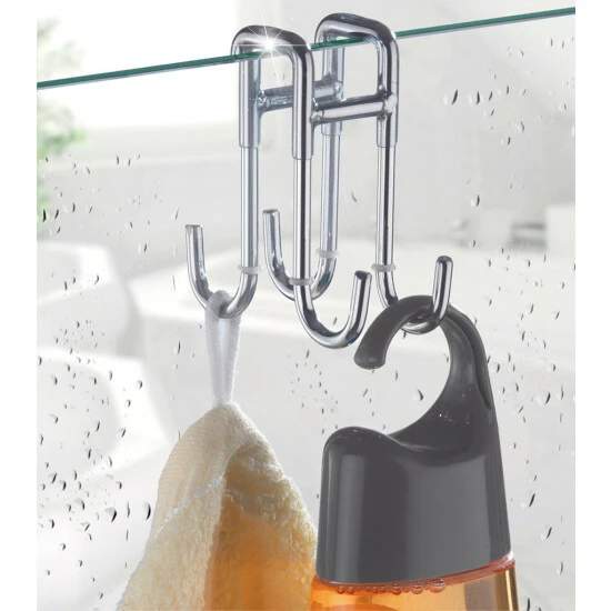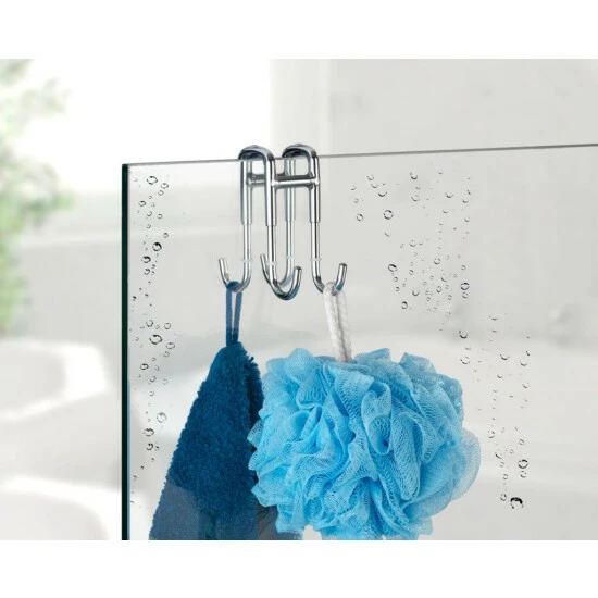 Der hochwertige Doppel-Duschhaken erfüllt auch die Anforderungen für größere Familien: der Duschhaken mit 4 Aufhängemöglichkeiten, bietet viel Platz für Duschutensilien, Schwamm, Handtücher, etc.