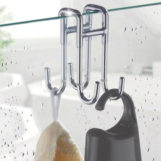 Die Handhabung ist kinderleicht. Der effektive Haken wird einfach über die Duschkabine gehängt und ermöglicht so eine elegante Aufbewahrung von der Duschinnen- und außenseite.