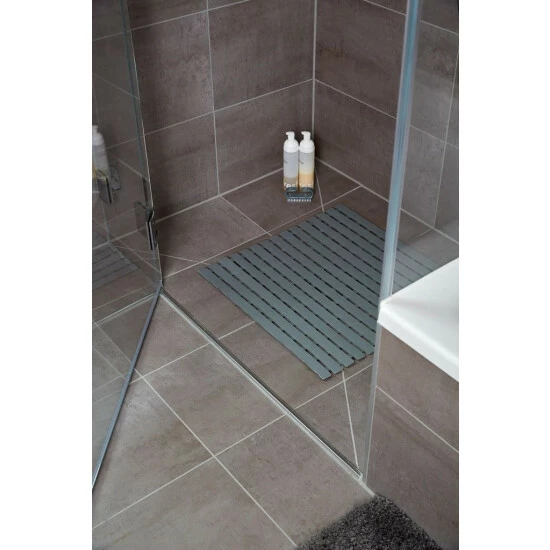 Holen Sie sich Stil und Behaglichkeit in Ihr Badezimmer! Für mehr Sicherheit und Komfort in der Dusche sorgt dabei die praktische Duschmatte Arinos Grau.