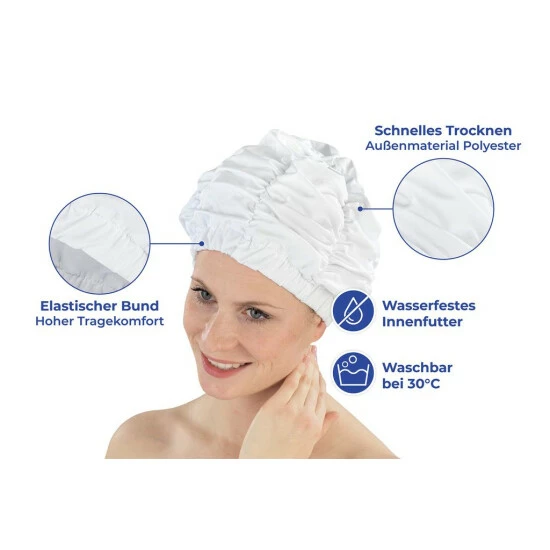 Sie kommen vom Friseur zurück, müssen aber schnell duschen und es ist schade, eine schön gestylte Frisur zu ruinieren? Die Wenko 2-Lagen-Kappe schützt die Frisur vor Nässe. Im Inneren befindet sich ein wasserdichtes Material. Die Außenschicht besteht aus einem weichen und angenehm anzufassenden, flexiblen Material. Der eingenähte Gummizug sorgt für außergewöhnliche Dichtheit.