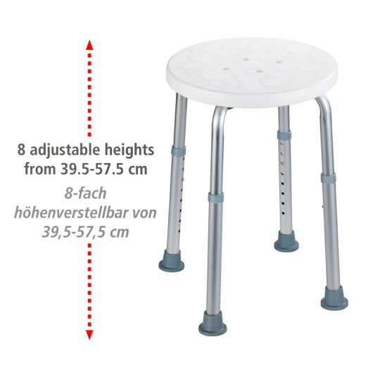 Dusch- + Wannenhocker höhenverst. Dusch- und Wannenhocker Secura – Hochwertiger Dusch- und Wannenhocker 8-fach höhenverstellbar – Tragkraft bis 120 kg – Aus stabilem Kunststoff mit rostfreien Aluminium-Beinen – Mit rutschfesten Gummifüßen für mehr Sicherheit