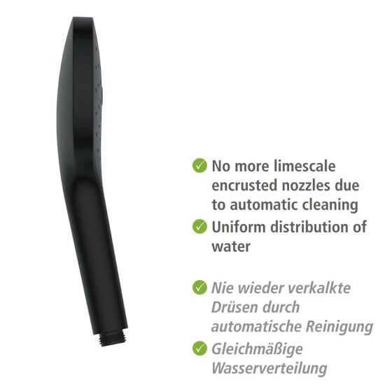 Die Innovation: Alle Automatic Cleaning Modelle sind mit einem einzigartigen System ausgerüstet, das durch eine innenliegende Reinigungsplatte Kalkablagerungen verhindert und somit die Düsen automatisch dauerhaft sauber und kalkfrei hält. Die gleichmäßige Wasserverteilung bleibt so dauerhaft erhalten. Das bedeutet für Sie kein Komfortverlust durch verstopfte Düsen bei langer Lebensdauer, auch bei sehr hartem, kalkhaltigem Wasser.