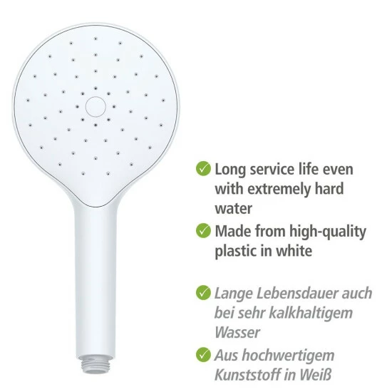 - Nie wieder Kalk, kein Komfortverlust mehr durch verstopfte Düsen, lange Lebensdauer auch bei sehr kalkhaltigem Wasser