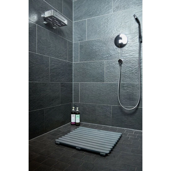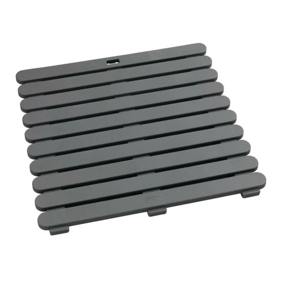 Aus stabilem Kunststoff in modernem Grau gehalten ergänzt die praktische Duschmatte Indoor & Outdoor die Badezimmer-Einrichtung um ein funktionelles Element.