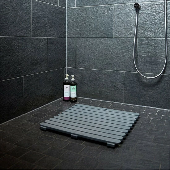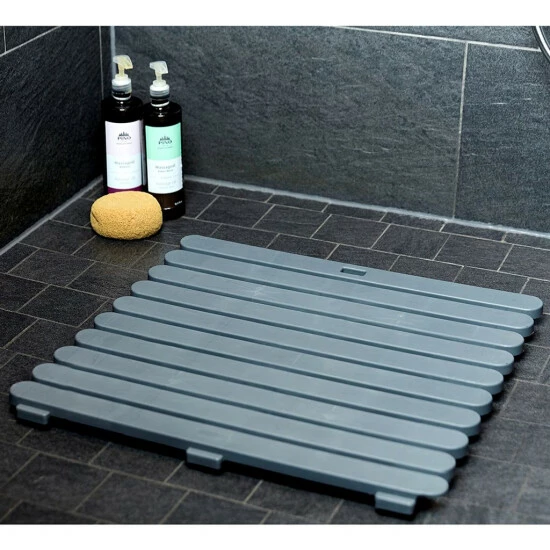 Das Duschrost vermittelt ein sicheres Laufgefühl und hält gleichzeitig die Bodenkälte ab. Die Fußmatte ist mit einer rutschhemmenden Struktur beschichtet.