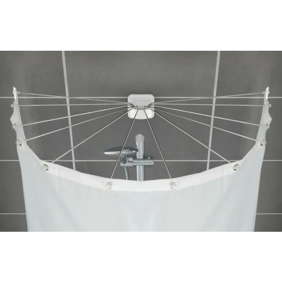 Mit diesem praktischen Duschvorhanghalter von WENKO wird das Duscherlebnis perfekt abgerundet. Mühelos wird die heimische Badewanne in eine Dusche verwandelt. Einfach die Duschspinne an die gewünschte Stelle mit den beiliegenden Schrauben und Dübeln montieren und das Austreten des Duschwassers wird so verhindert. Der Boden bleibt trocken. Nach dem Duschen die 12 Arme einfach zur Seite schieben – praktisch und platzsparend.