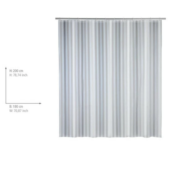 Mit einer Breite von 180 cm eignet sich der Vorhang sowohl für Dusche als auch Badewanne.