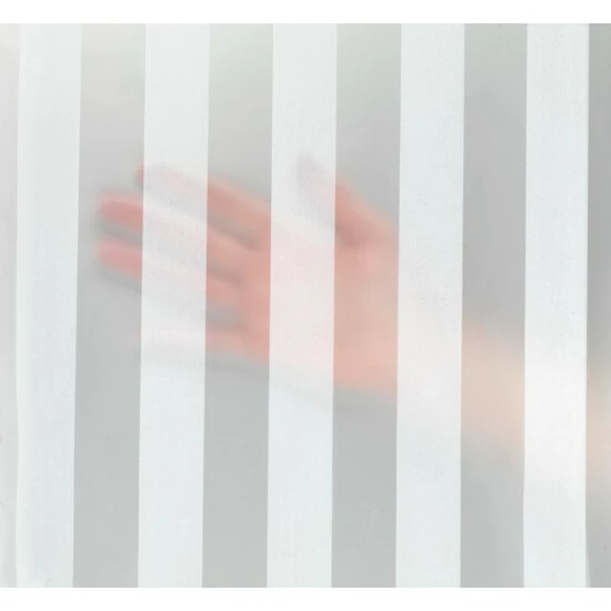 Der pflegeleichte Duschvorhang Frozen setzt mit seinem gefrosteten Streifenmuster stilvolle Akzente in jedes Badezimmer. Er ist aus umweltfreundlichem, recyclingfähigem Kunststofffilm (PEVA) hergestellt und ist absolut wasserdicht.