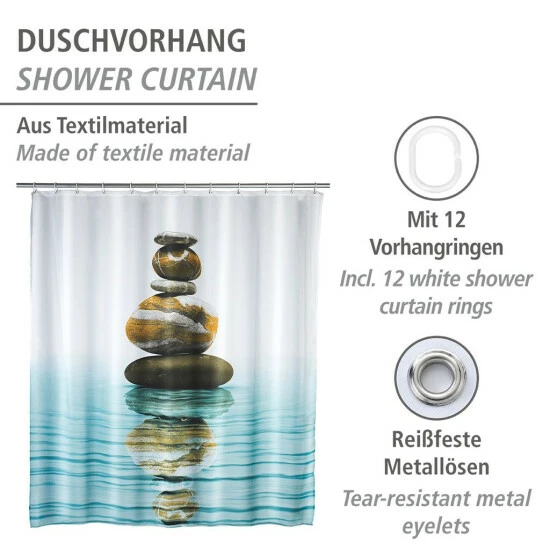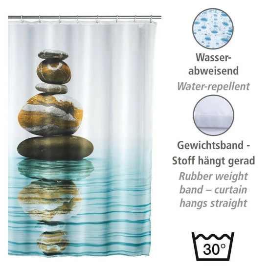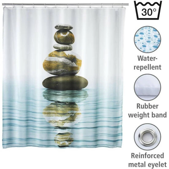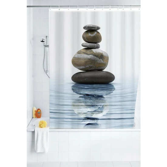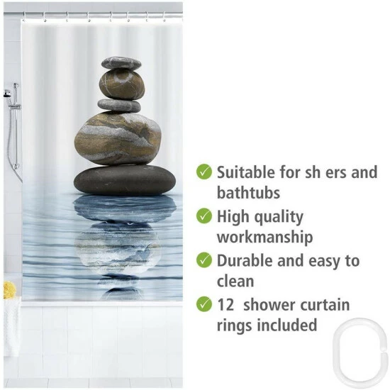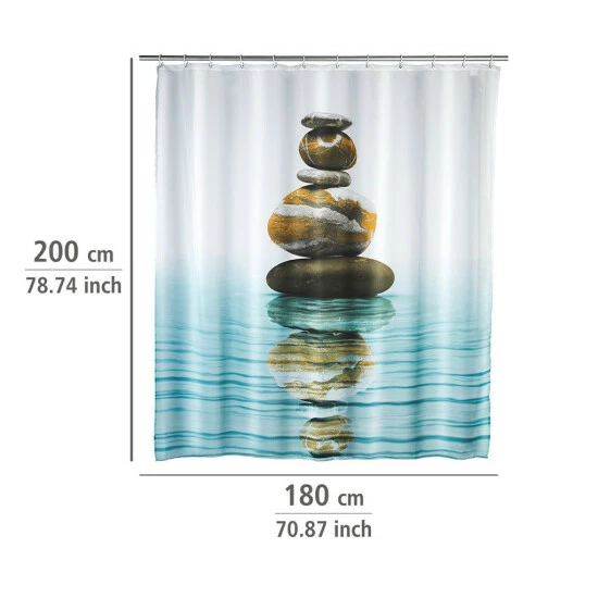 Der mit schönen Steinen bedruckte Vorhang eignet sich mit einer Breite von 180 cm sowohl für Duschen als auch Badewannen.