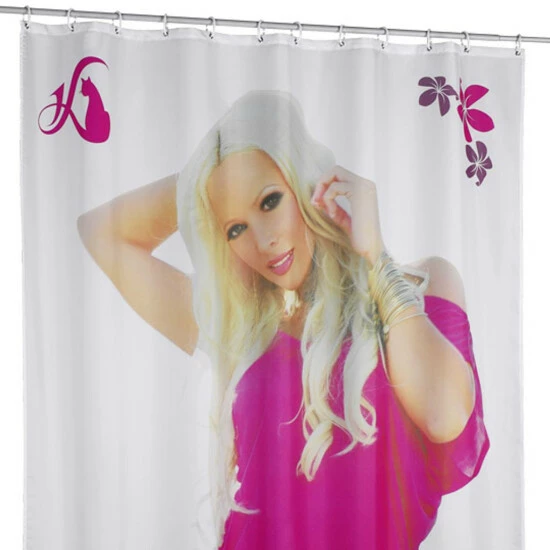 Der hochwertig verarbeitete Duschvorhang ist neben dem Logo und einer dekorativen Blütenverzierung großflächig mit einem bezaubernden Foto der Kult-Blondine versehen und bringt Promi-Atmosphäre in jedes Bad.