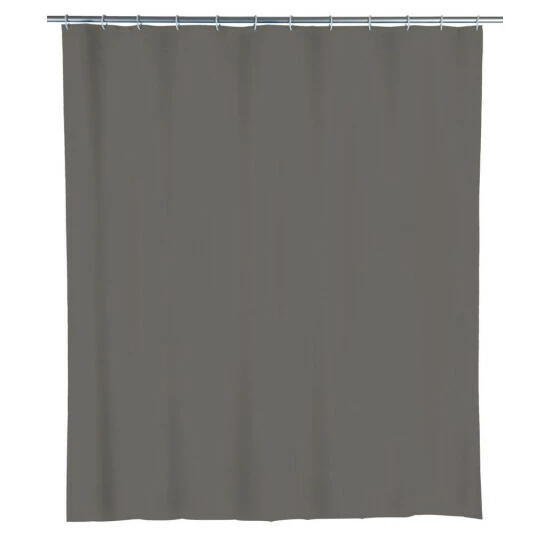 WENKO Duschvorhang Uni Mouse Grey – wasserdicht, pflegeleicht, mit 16 Duschvorhangringen, Polyethylen-Vinylacetat, 240 x 180 cm, Grau