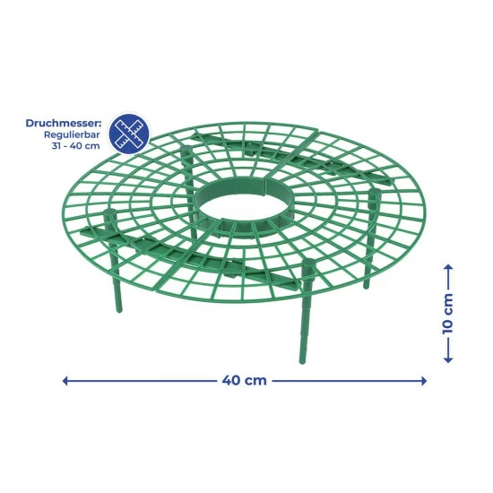 Der Erdbeer-Reifer ist aus solidem Kunststoff gefertigt und kann von 31 – 40 cm im Durchmesser reguliert werden.