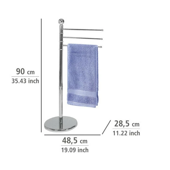 - Lieferumfang: 1x Exclusiv Handtuch- und Kleiderständer, Chrom, massive Bodenplatte, von WENKO, Maße (B x H x T): 28,5 x 90 x 48,5 cm.