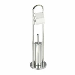 Sie ist eine 2 in 1 Kombination bestehend aus einem geschlossenem WC-Bürstenhalter und einer Toilettenpapierrollenhalterung mit Deckel für die sofortige Entnahme.
