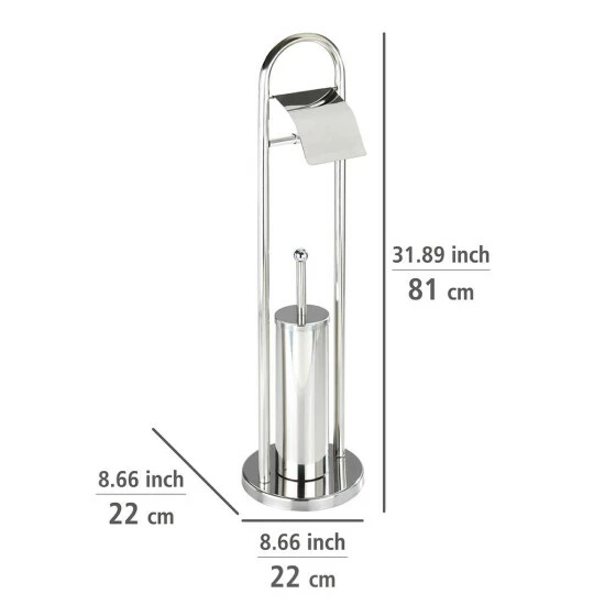 Die freistehende WC-Bürste Exclusive Vasto von Wenko fügt sich perfekt in Ihre Badeinrichtung ein. Er besteht aus einem geschlossenen Toilettenbürstenhalter und einem Toilettenpapierhalter mit Deckel. Die geschlossene Form der formschönen Garnitur verhindert das Entweichen von Gerüchen und die Toilettenbürste ist nicht sofort sichtbar. Die Garnitur enthält einen Toilettenbürstenhalter mit einer auswechselbaren, weißen Toilettenbürste.