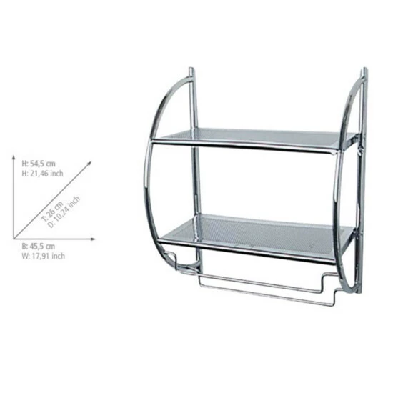 Hängen Sie dieses Wandregal von Wenko einfach in Ihr Bad. Das Regal verfügt über zwei stabile Einlegeböden und die Möglichkeit, Handtücher an das Regal zu hängen. So haben Sie alle Dusch- und Badezusätze zur Hand.