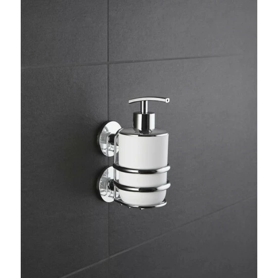 Die Montage des praktischen Flüssigseifen-Spenders ist äußerst mühelos: Die Innovation in Sachen Befestigungstechnik heißt Express-Loc! Das neue Express-Loc Klebe-Push System zeichnet sich durch extrem starken Halt auf allen tragfähigen Oberflächen, z.B. Fliesen, Naturstein, Glas, Beton, Metall, Holz und vielen Kunststoffen aus.