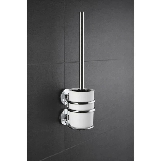 Der abnehmbare Bürstenhalter aus bruchsicherem, weißem Spezialkunststoff ist leicht zu reinigen und hält die Bürste stets am gewünschten Platz dekorativ griffbereit.