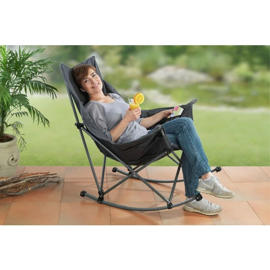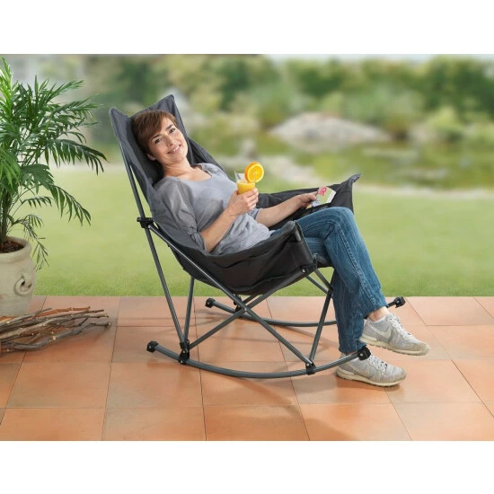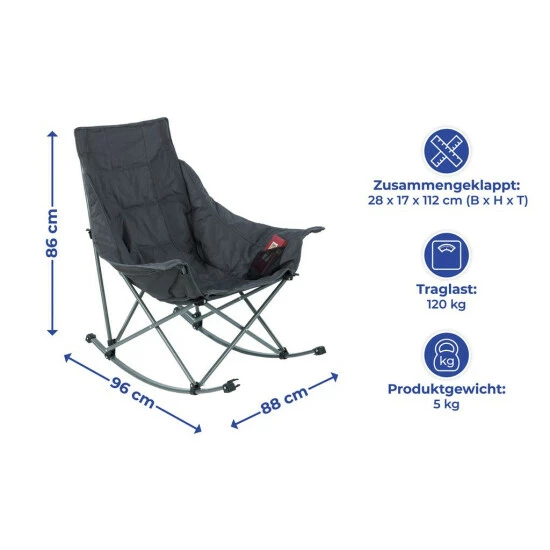 Schaukelstuhl mit Montagefunktion , anthrazit Farbe, WENKO Deutsche Marke wird hervorragend für Wanderer, Picknicks und alle Arten von Outdoor-Ausflügen sein. Idealerweise findet es auch auf der Terrasse, beim Camping und sogar zu Hause Gebrauch. Der Stuhl hat eine stabile Metallstruktur, wodurch er stabil ist und man bequem darauf sitzen kann. Ein besonderer Vorteil dieses Modells ist die Tatsache, dass der Stuhl schaukend ist.