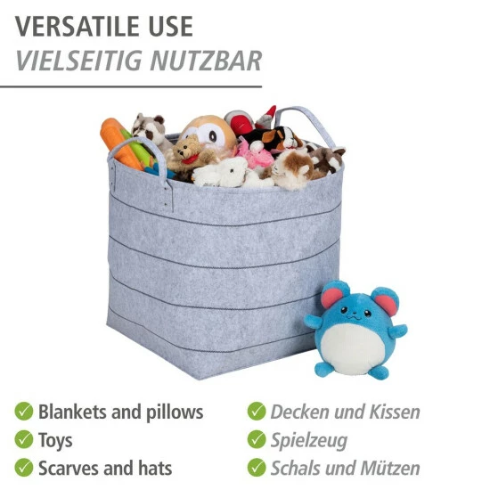 Nella – nordisches Grau trifft auf wohlgeformte Form. Das ganz besondere Aufbewahrungsutensil von WENKO bietet Ihren Textilien einen ordentlichen Platz.