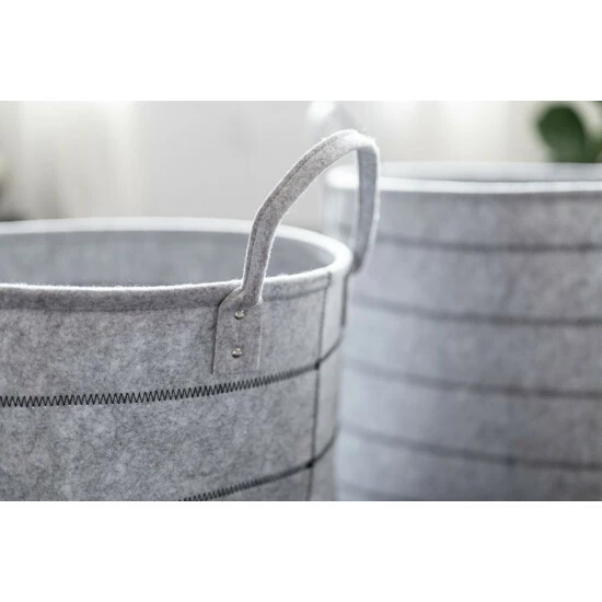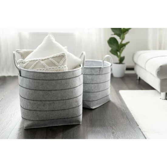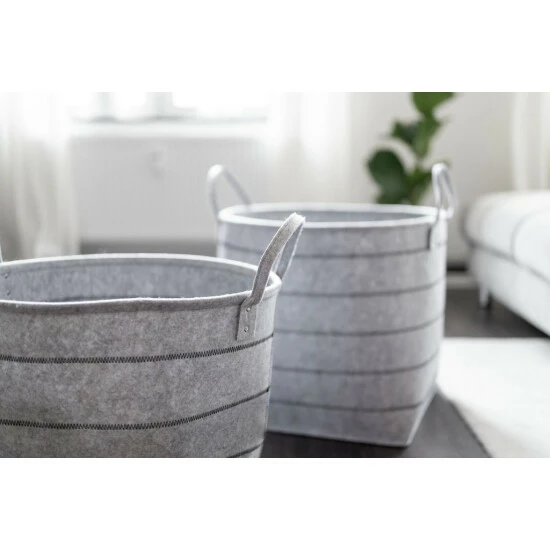 Transparente Plastikboxen mögen zwar praktisch sein, doch ein wirklicher Blickfang sind sie nicht. Dabei müssen sich manche Wolldecken gar nicht im Schrank oder einer Kiste verstecken. Bewahren Sie Ihre Kuscheldecken doch ansprechen in dem dekorativen Filz-Aufbewahrungskorb auf. Elegante Akzente im Wohnraum setzt der Korb mit zwei Griffen dank der interessanten Ziernaht. Das dezente Grau fügst sich stilvoll in nahezu jeden Wohnstil ein.