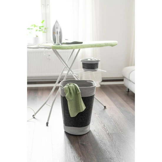 Das harmonisch abgerundete Designelement eignet sich für viele Zwecke. Zum Beispiel verwahrt der hübsche Korb mit 5 Liter Fassungsvermögen Näh- und Bastelbedarf, Wolle zum Stricken oder Häkeln, Wolldecken und andere Textilien, Zeitschriften, Bücher oder Kaminholz elegant auf. Positionieren können Sie das Wohnaccessoire beispielsweise stilvoll auf dem Boden, in der Nähe des Sofas, im Wohnraum oder auch in Reichweite nah am Bett. In diesen oder anderen Räumen des Hauses bietet sich auch eine versteckte Platzierung in Schrank oder Schublade an. Selbst in einem offenen Regal bringt der Ordnungshelfer Übersichtlichkeit und Struktur in den Alltag.