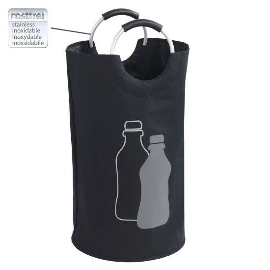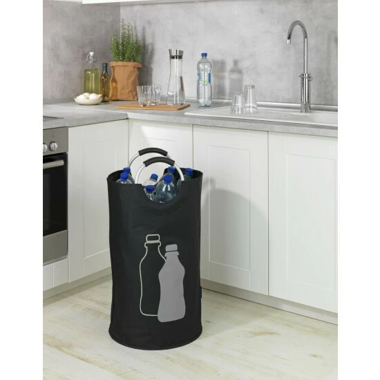 Mit dem Flaschensammler Jumbo werden große Tragetaschen abgelöst und eine stilvolle Aufbewahrungsmöglichkeit kann einziehen! Der extra große Multifunktionssammler Jumbo im eleganten Schwarz bietet mit 69 Litern Fassungsvermögen viel Stauraum. Der dekorative Aufdruck macht den Sammler zu einem echten Hingucker. Mit einer Abmessung von Maße (B/T x H): 38 x 72 cm bietet das Organisationstalent auch noch Luft nach oben. Die kompakte Abmessung ermöglicht zugleich eine Platzierung in kleinen Nischen oder in Zwischenräumen zwischen der Arbeitsplatte, sollte kein Abstellraum verfügbar sein.