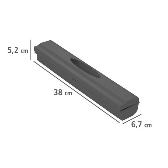 - Lieferumfang: Folienhalter von WENKO, zur Aufbewahrung von Folie in der Küche, aus Kunststoff in Anthrazit, Maße (B x H x T): 38 x 5,2 x 6,7 cm