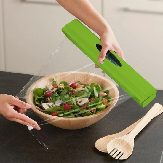 Dieser handliche Folienspender ist überall, in der Küche und unterwegs, einsetzbar. Wenn Sie ihn gerade nicht brauchen, kann er einsatzbereit in der Küchenschublade verschwinden.
