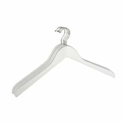 Der praktische Formbügel ist aus weißlackiertem Holz gefertigt und mit einem drehbaren Haken ausgestattet. Stabilität und Funktionalität gehen hier Hand in Hand. Im Lieferumfang ist ein komfortables 4er Set enthalten.