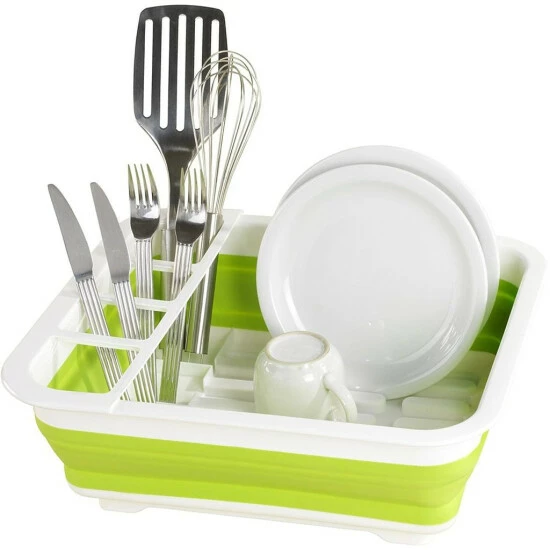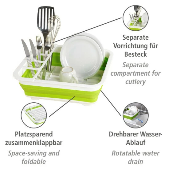 - faltbare Tellerabtropffläche, Tassen, Besteck,