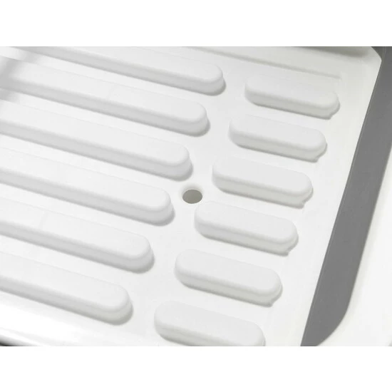 Das praktische Geschirrabtropfgestell bietet mit seiner großen Ablagefläche viel Platz für Teller, Tassen, Messer und Gabeln. Da es auch im Zeitalter der Spülmaschine immer noch Geschirr und Besteck gibt, das besser von Hand gespült werden sollte, dient der Abtropfständer als funktionelles Zubehör für die Spüle in Küche, Gartenhaus oder Wohnmobil.