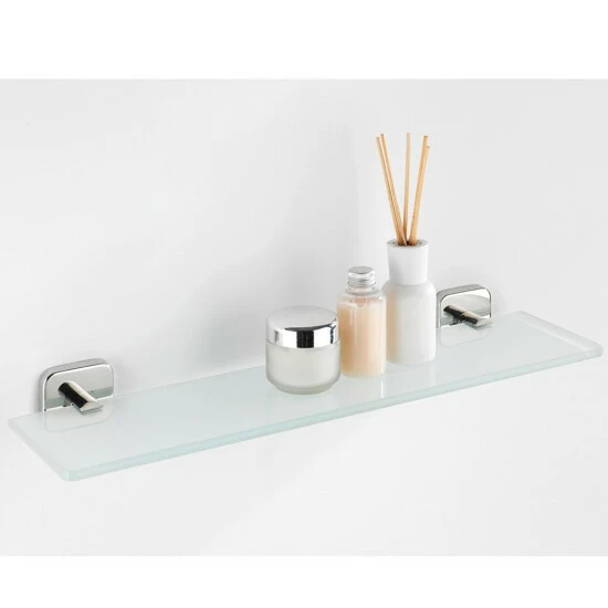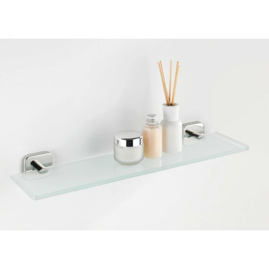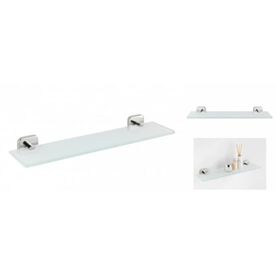 Die attraktive Glasablage aus satiniertem Glas eignet sich optimal zur Befestigung zwischen Spiegel und Waschbecken. Dabei bietet das schöne Glasregal viel Platz für alle Bad-Utensilien und schafft zusätzliche Ablagefläche zum Abstellen von Waschlotion, Seifenspender, Cremes, Dekoartikeln, etc.