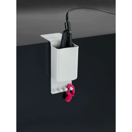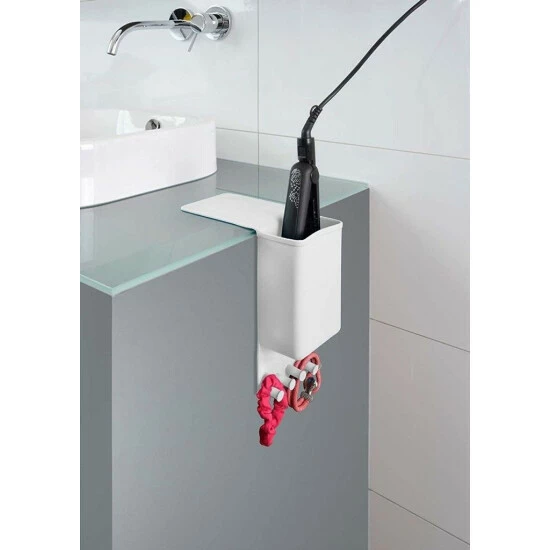 Mit dem eleganten Glätteisenhalter Ampio Weiß haben Glätteisen, Lockenstab und Co. stets einen festen Platz und sind jeden Morgen schnell griffbereit. Der Stecker wird einfach an einem der integrierten Haken eingehängt, um lästiges Verknoten zu vermeiden. An den vier Haken können außerdem auch Armbänder, Haargummis oder Handtücher ordentlich und übersichtlich verwahrt werden.