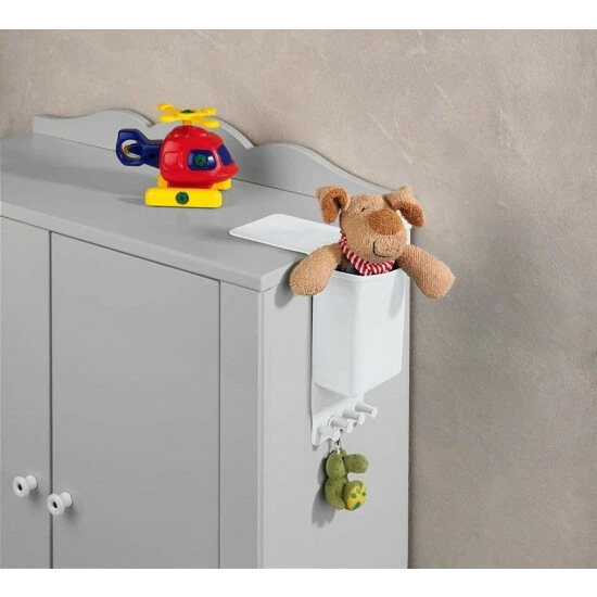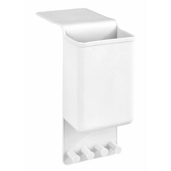 Organizer ist ein Markenprodukt von WENKO, dessen Produkte sich durch Haltbarkeit und gutes Training auszeichnen. Die Hängeplatte ist für alle, die gerne Gadgets hilfreich bei der Aufbewahrung von Hauskleinigkeiten sind. Der Organizer hat einen Behälter und eine zusätzliche 4 Kleiderbügel, so dass er viele Anwendungen hat. Im Badezimmer funktioniert es perfekt als Box zum Aufbewahren von Lockenwicklern oder Glätteisen, Haken können verwendet werden, um Haarutensilien aufzuhängen. Im Flur kann erfolgreich den Standard-Schlüsselaufhänger ersetzen. In der Küche findet es seinen Platz als Stauraum für Küchenutensilien und einen Kleiderbügel. Es ist sehr einfach zu installieren, drücken Sie es einfach. Weiße Farbe ist so vielseitig, dass sie zu jedem Stil passt, in dem das Haus angeordnet ist.