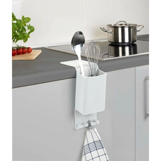 Seien Sie kreativ! Denn auch in der Küche macht die Halterung eine gute Figur und hält Spülmittel, Lappen und Geschirrtücher sowie die Spülbürste oder Kochutensilien dekorativ griffbereit. Auch am Schreibtisch darf die Ablage nicht fehlen – sie bietet Platz für Stifte, Kleberolle, Schere und vieles mehr.