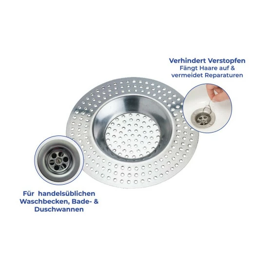 Das Sieb verhindert die Verstopfung von Abflüssen sowie unangenehme Geruchsbildung. Einfach herausnehmen und Haare o.ä. entfernen und wieder einsetzen. So erspart man den Handwerker!