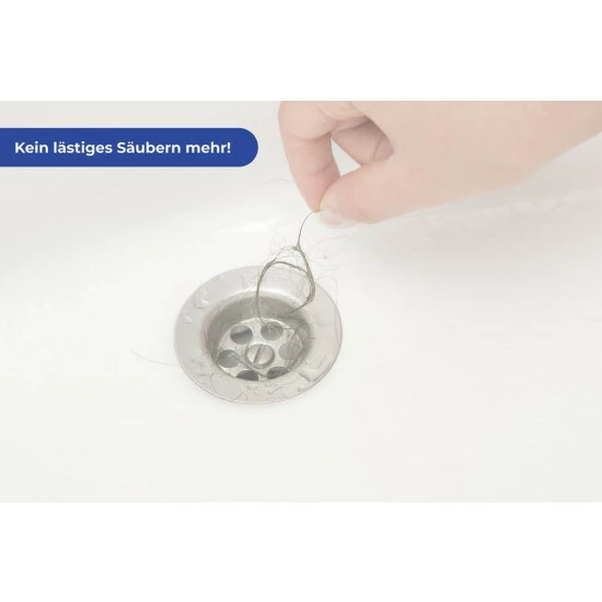 - Beugt dem Verstopfen des Abflusses durch Haare vor