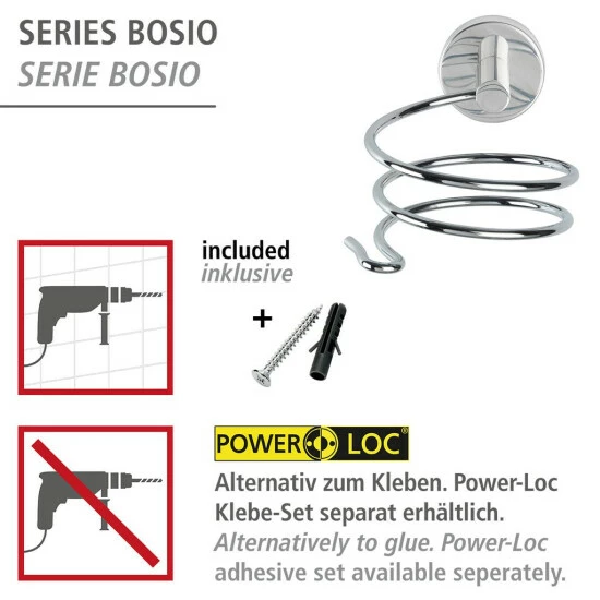 - Deutsche Präzision: Der BOSIO Haartrocknerhalter ist ein Produkt der Marke WENKO. Das Unternehmen ist bekannt für seinen modernen Stil, seine Liebe zum Detail und seine praktischen Lösungen.