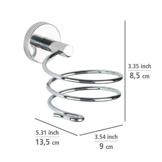 Optimale Maße: Mit seinen Maßen von (B x H x T): 9 x 8,5 x 13,5 cm hat der Haartrockner-Halter die idealen Maße für eine Wandbefestigung in jedem Badezimmer und Gäste-WC