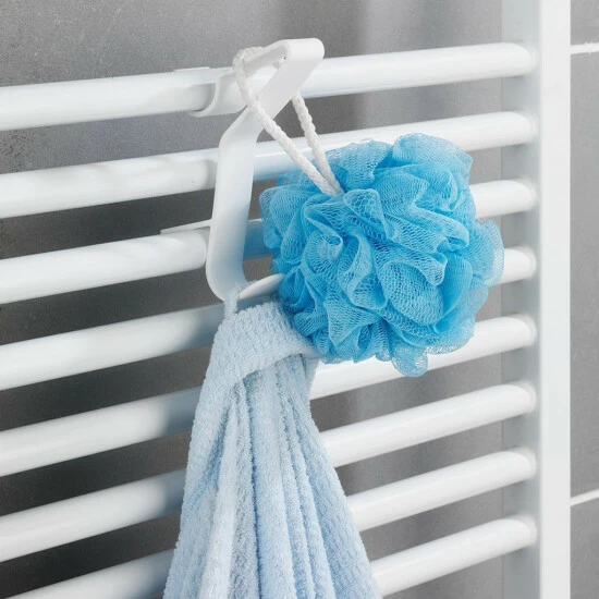 Der praktische Heizkörperhaken aus weißem, flexiblem Kunststoff passt sich an jedem Rundrohrheizkörper an und kann somit universell genutzt werden. In dezentem Weiß bietet der Haken ausreichend Platz im Bad oder Gäste-WC für Bademäntel oder Bade- und Duschtücher.
