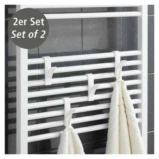 WENKO Haken für Handtuchheizkörper Weiß 2er Set, Heizkörperhaken, 2er Set