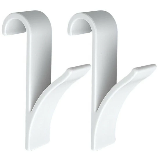 Die aus stabilem Kunststoff gefertigten Haken können ganz einfach an den Handtuchheizkörper im Badezimmer angehängt werden. Das praktische 2er Set in der Farbe Weiß ist für Heizstangen von bis zu 3 cm geeignet und ein nützliches und hochwertiges Badezimmer-Accessoire, an dem Handtücher aufgehangen werden können..