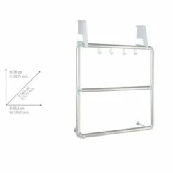 Mit dieser Badgarderobe wird der ungenutzte Platz hinter der Tür, an der Wand oder an der Duschkabine ganz unkompliziert zur praktischen Aufhängemöglichkeit umgebaut. Auf drei Garderobenstangen finden Handtücher oder Kleidungsstücke und an den drei integrierten Haken Waschlappen oder Bad-Accessoires zusätzlichen Platz.
