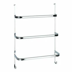 Handtuchhalter aus verchromtem Stahl – Der praktische Handtuchhalter “Irpinia” nimmt kaum Platz weg, denn das clevere Bad-Accessoire wird einfach an der Tür (Falzstärke 2 – 4 cm) oder der Duschkabine eingehängt. “Irpinia” ist aus verchromtem Stahl gefertigt und bietet auf drei abgerundeten Stangen Platz für Handtücher oder Waschlappen. H 77,5 x B 54,5 x T 21,5 cm.