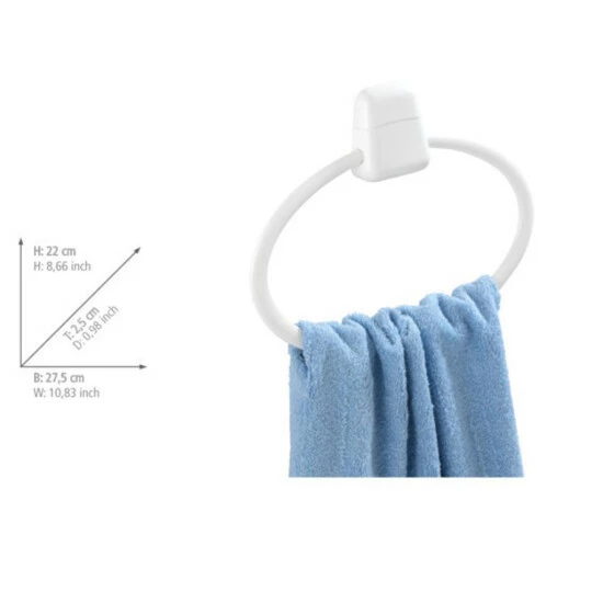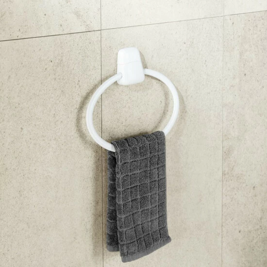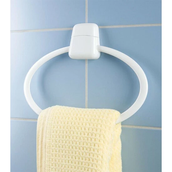 Der praktische Handtuchhalter ist aus hochwertigem Kunststoff hergestellt. Der flexibel nach oben und unten bewegliche Ring eignet sich ideal zum Aufhängen von Handtüchern und hält sie stets griffbereit.